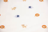 Nähpaket mit Baumwolljersey mit kleinen Safaritieren auf ecrufarbenem Hintergrund.