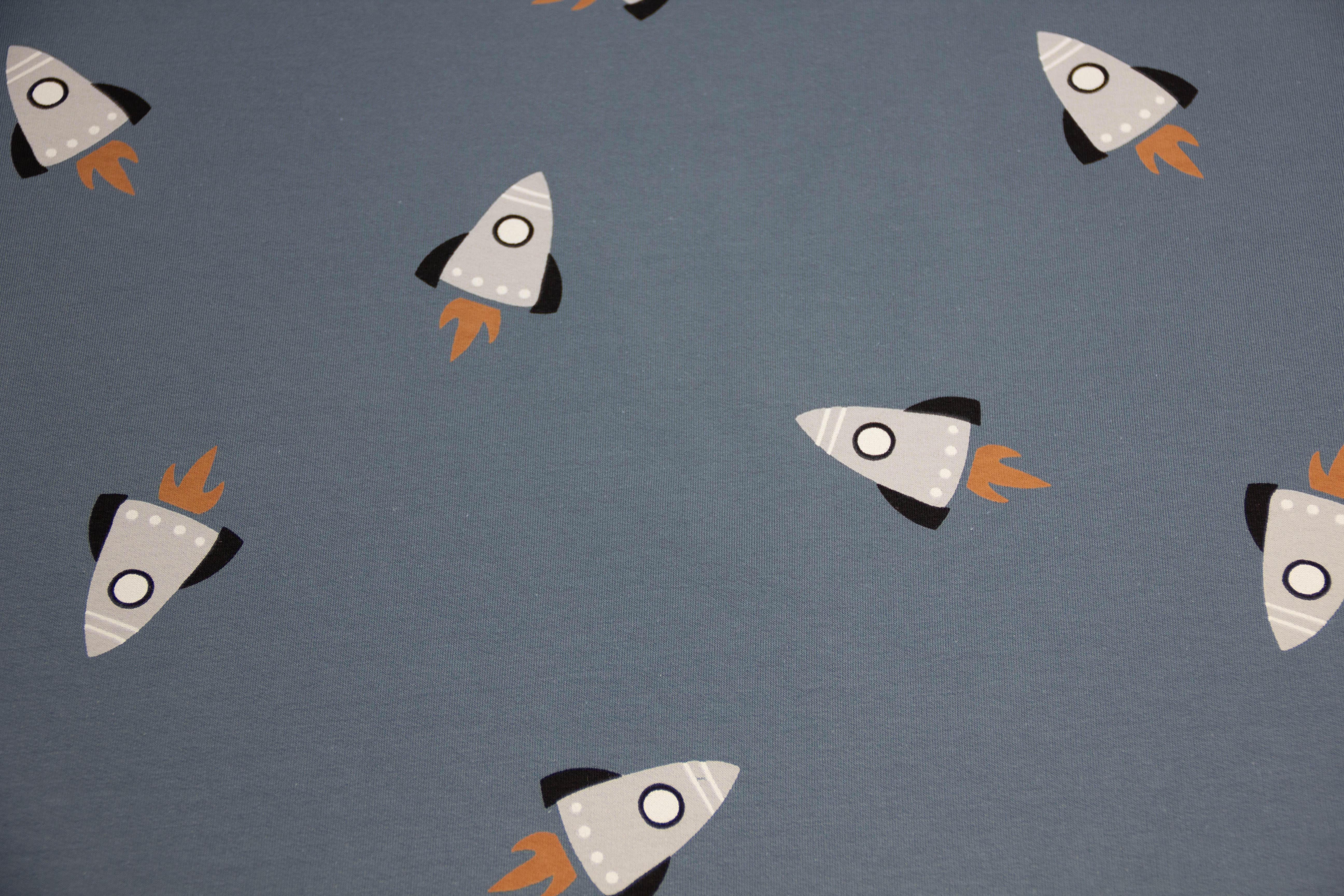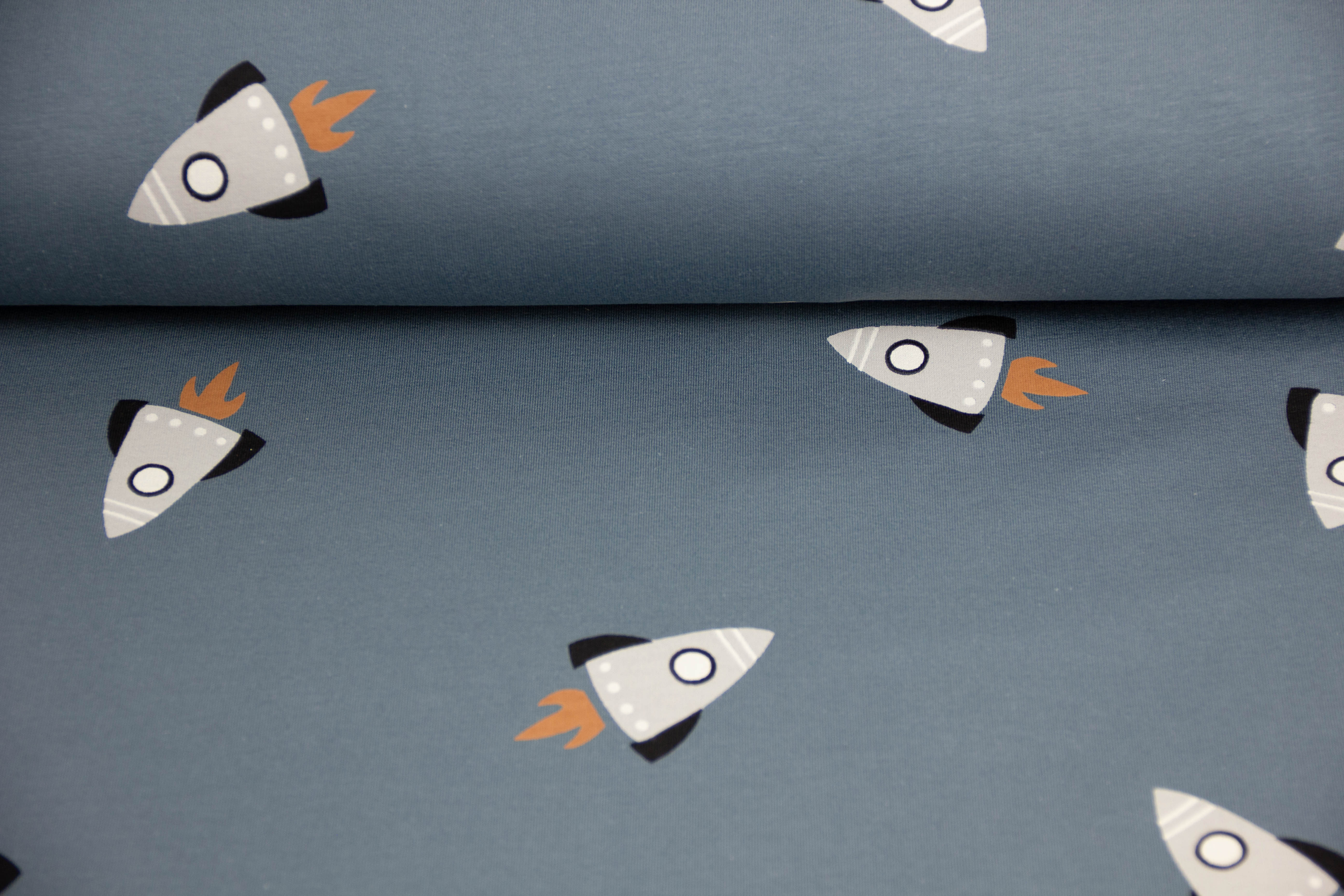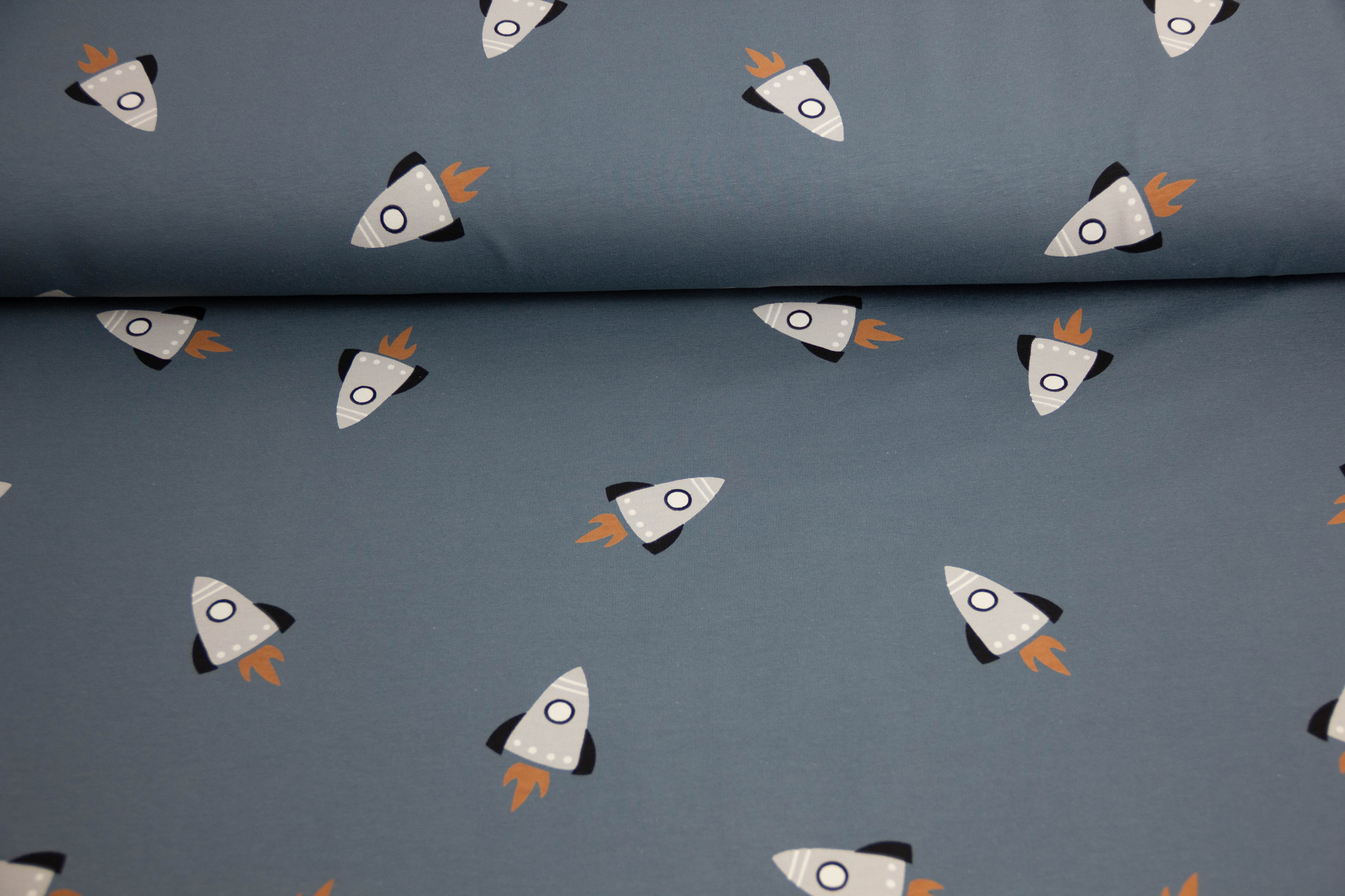 French Terry mit Raketen, blau, indigoblau, 0,5 m