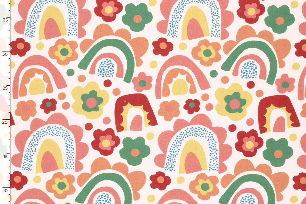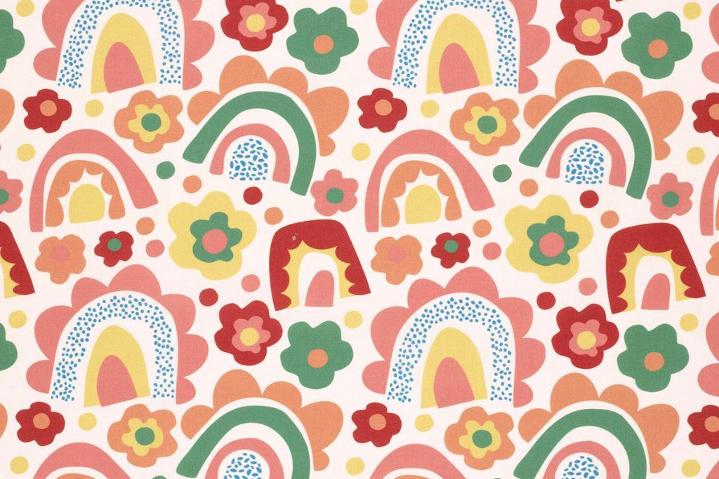 Baumwollwebware, mit Blumen und Regenbogen, wollweiß, 0,5 m