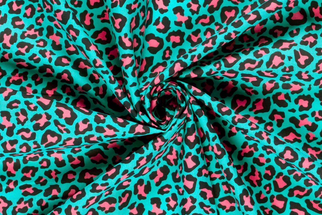 Baumwollwebware, Popeline Leo Print, aqua, 0,5 m