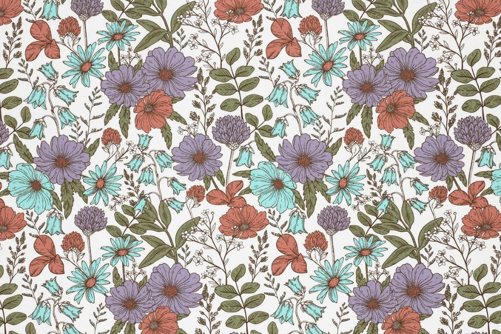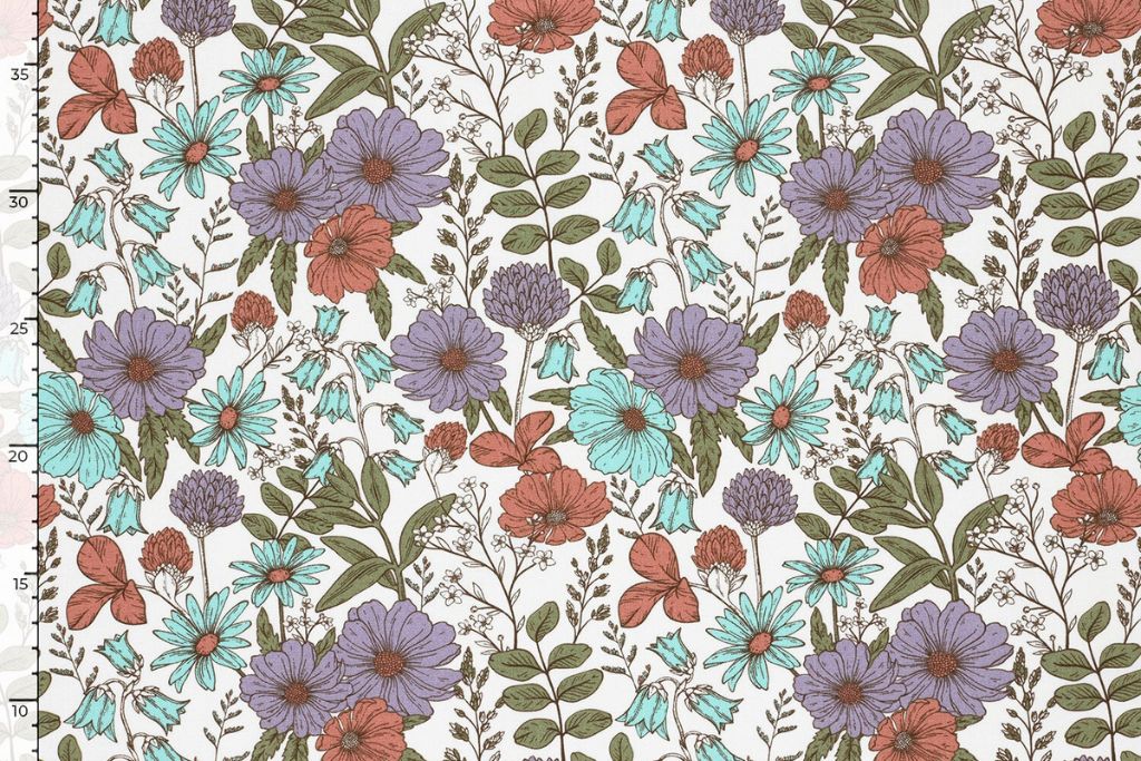 Baumwollwebware, Popeline mit Blumen, wollweiß, 0,5 m