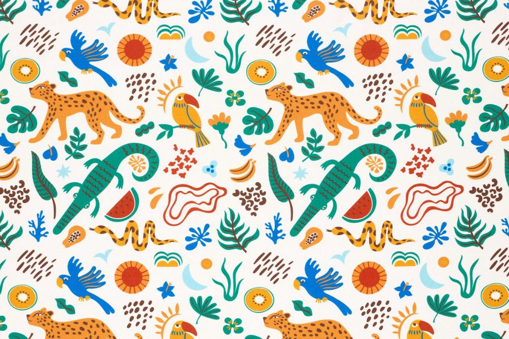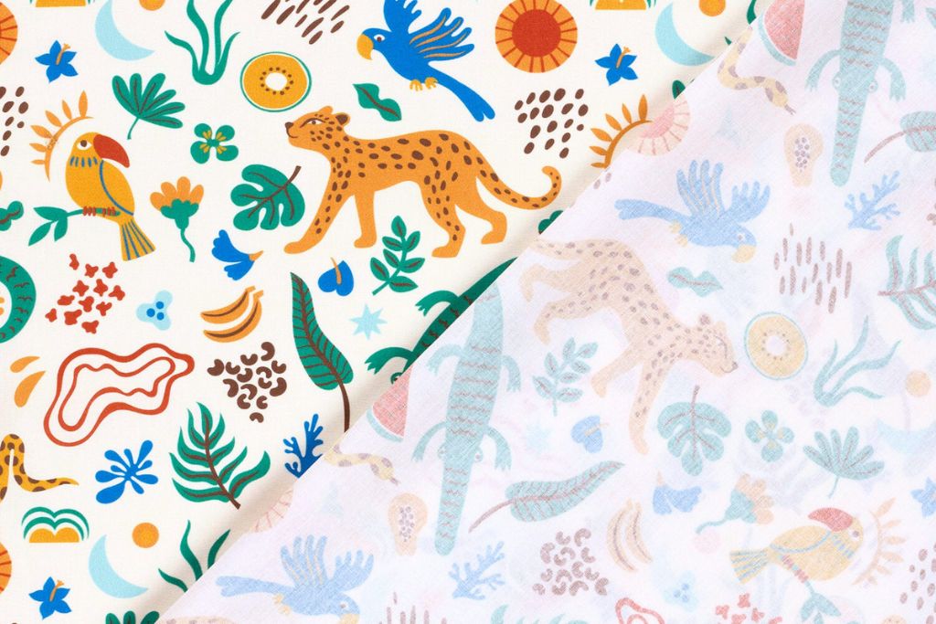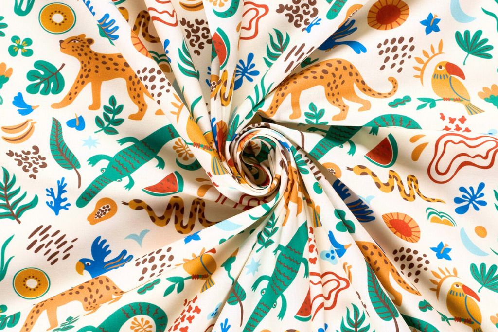 Baumwollwebware, Popeline mit exotischen Tieren, wollweiß, 0,5 m