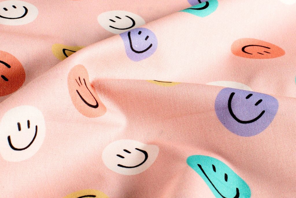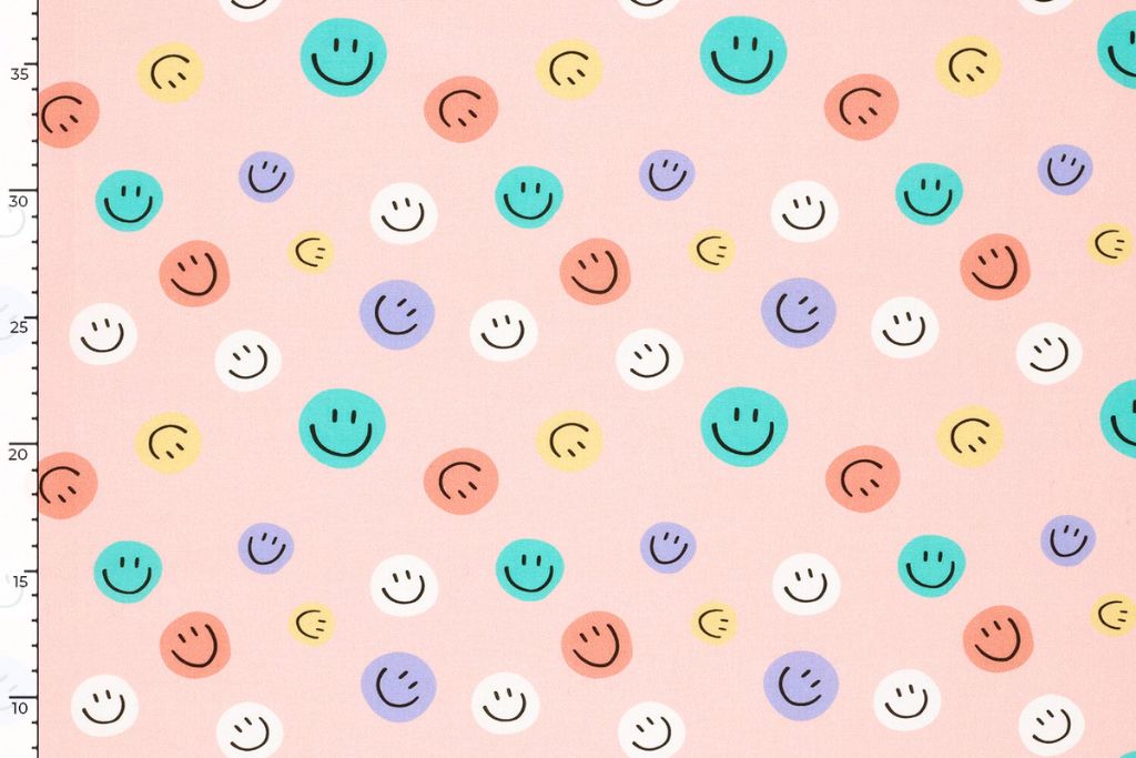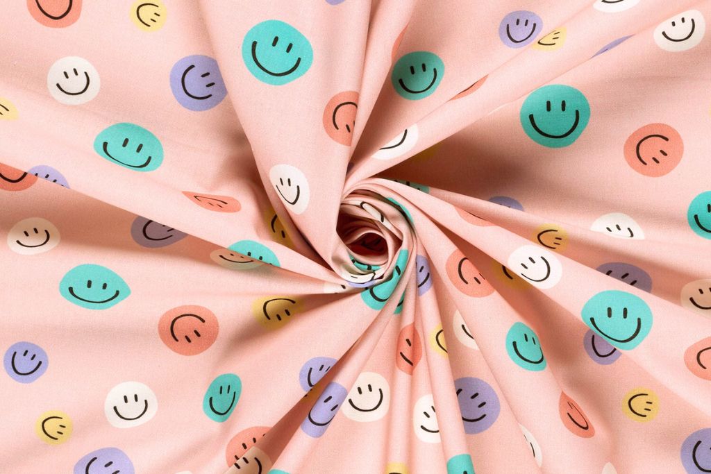 Baumwollwebware, Popeline mit Smileys, Emoticons, altrosa, 0,5 m