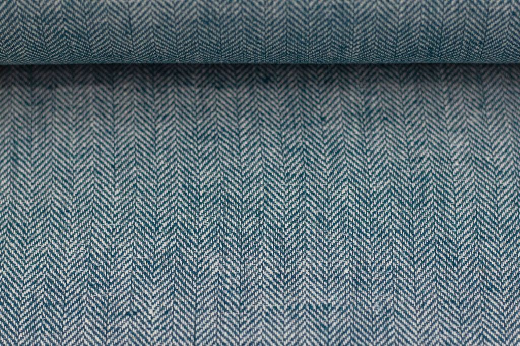 Leinen Baumwoll Mix "Paul", Fischgrätmuster, petrol, 0,5 m