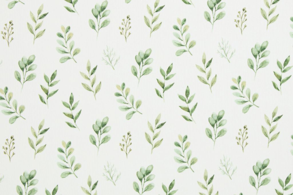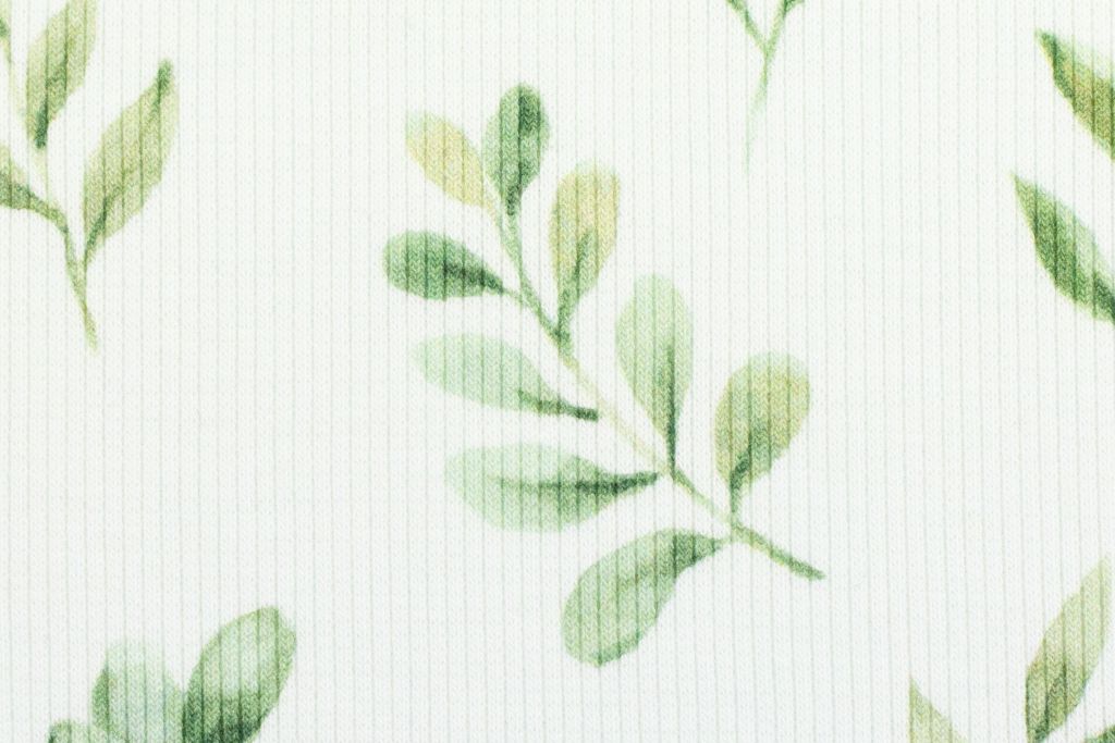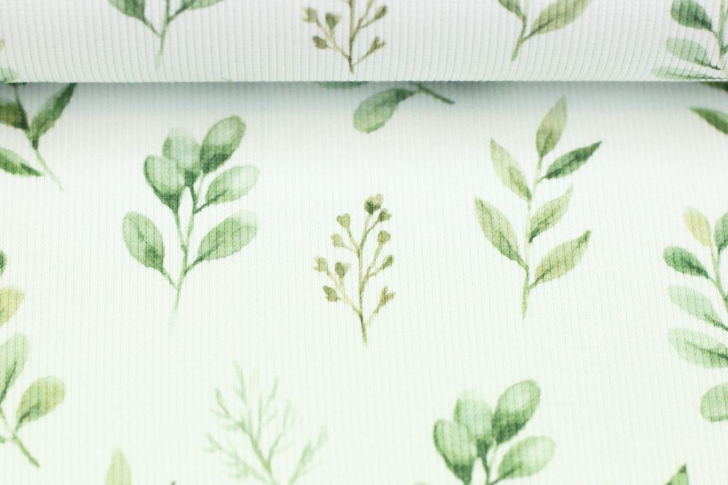 Rippjersey mit Zweigen "Iva", natur, grün, 0,5 m