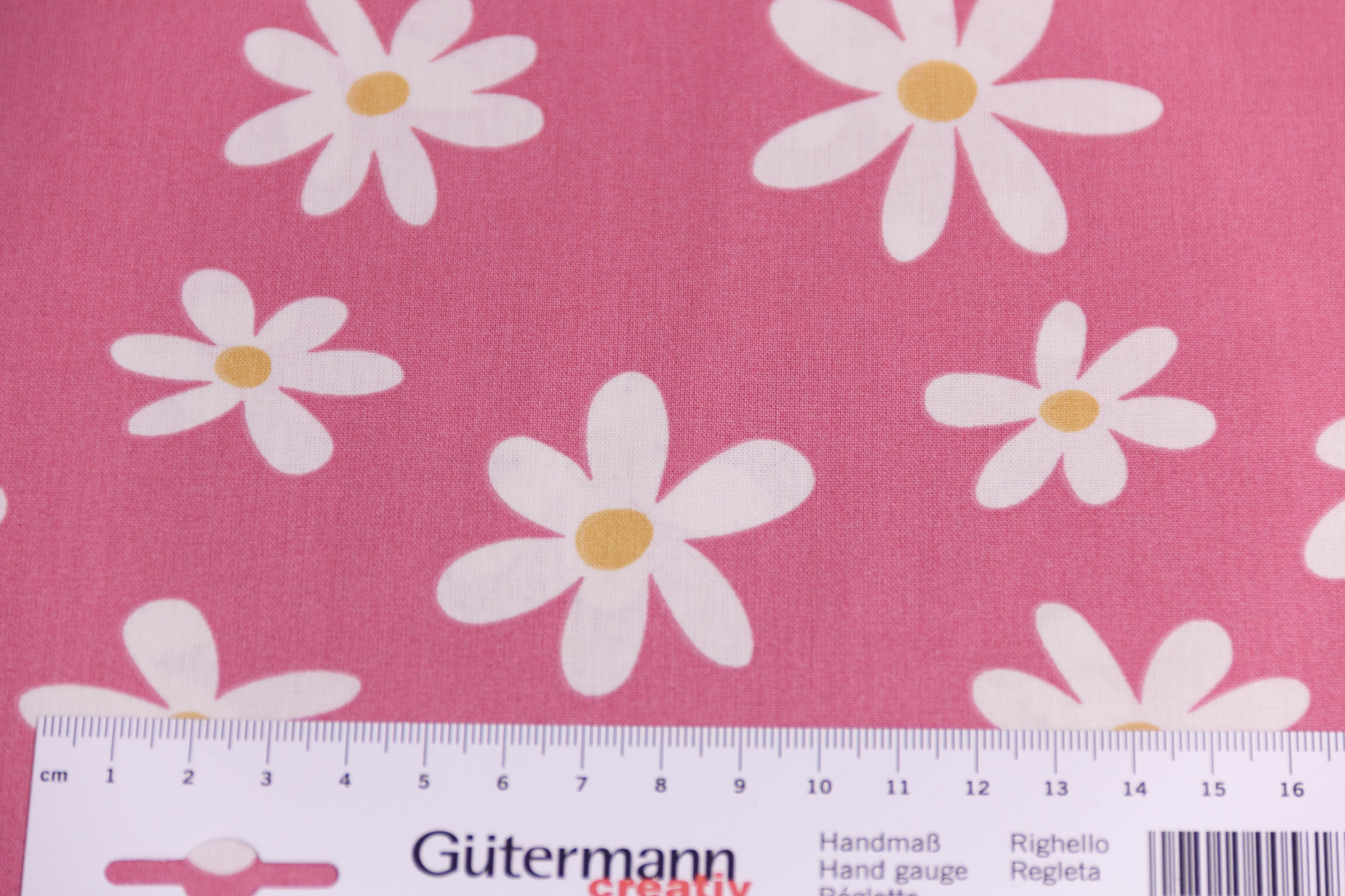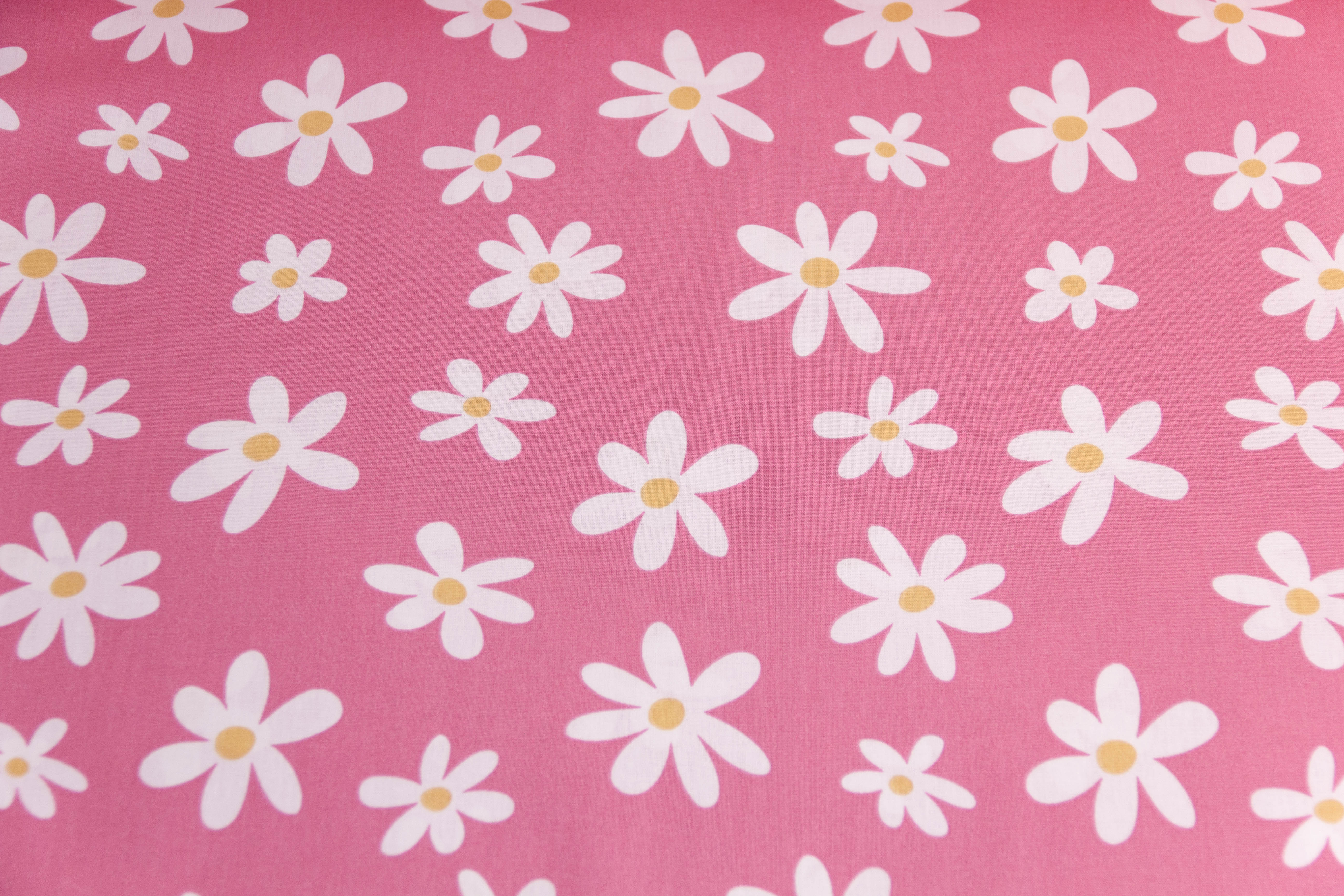 Baumwolle, Popeline mit Blumen, rosa, 0,5 m