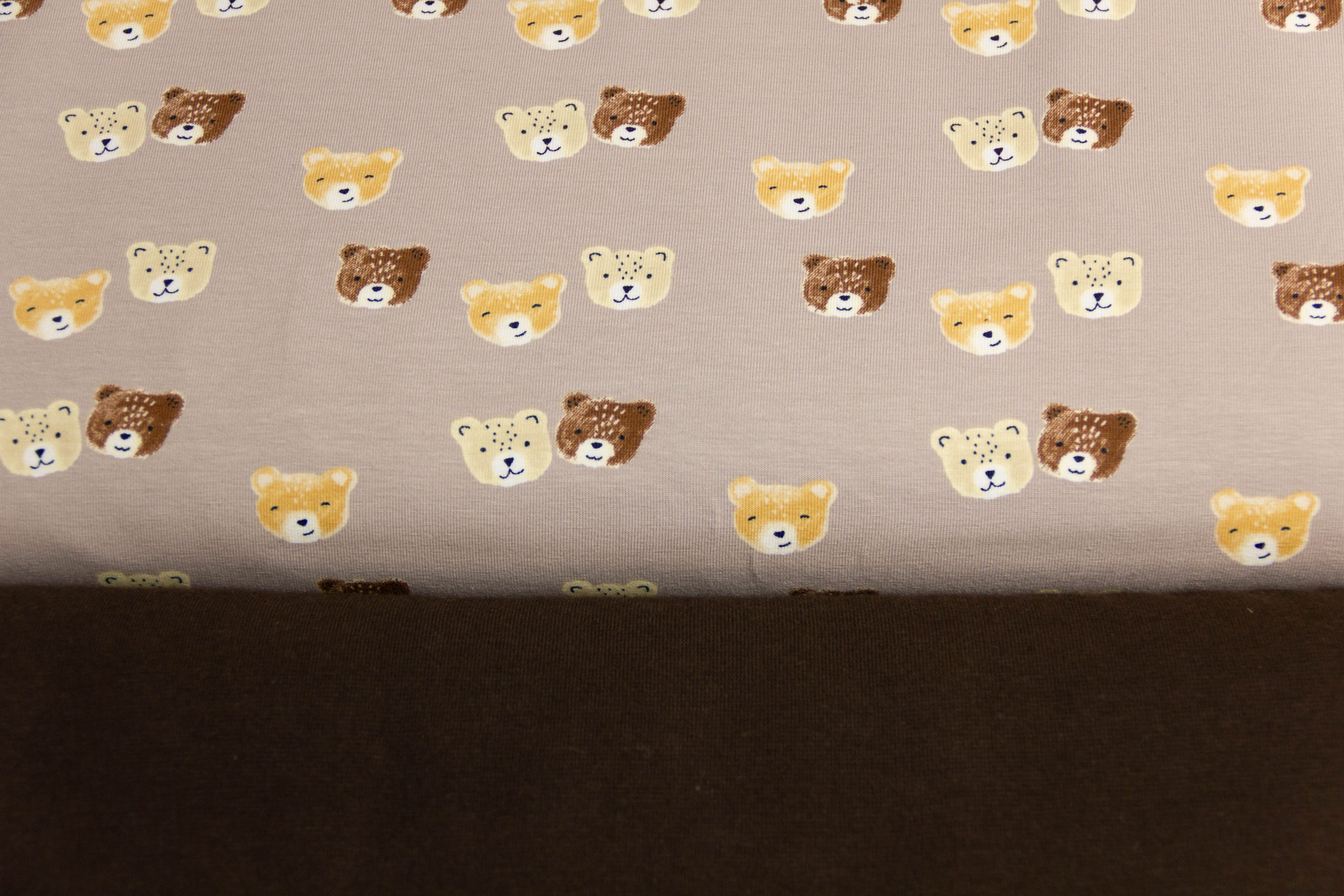 Stoffpaket Jersey + Bündchen Jersey mit Bären, taupe, braun