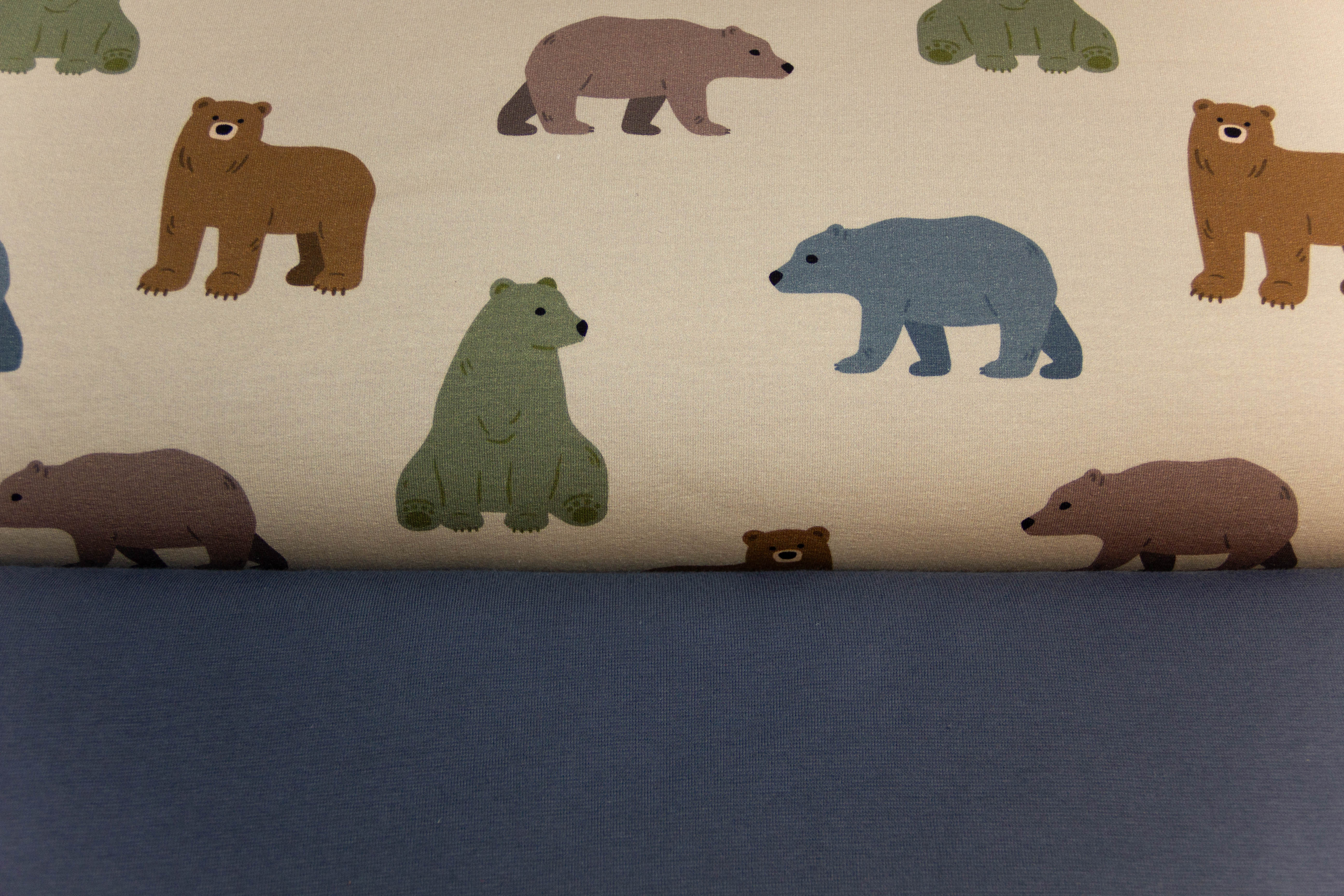Stoffpaket French Terry + Bündchen French Terry mit Bären, beige, rauchblau