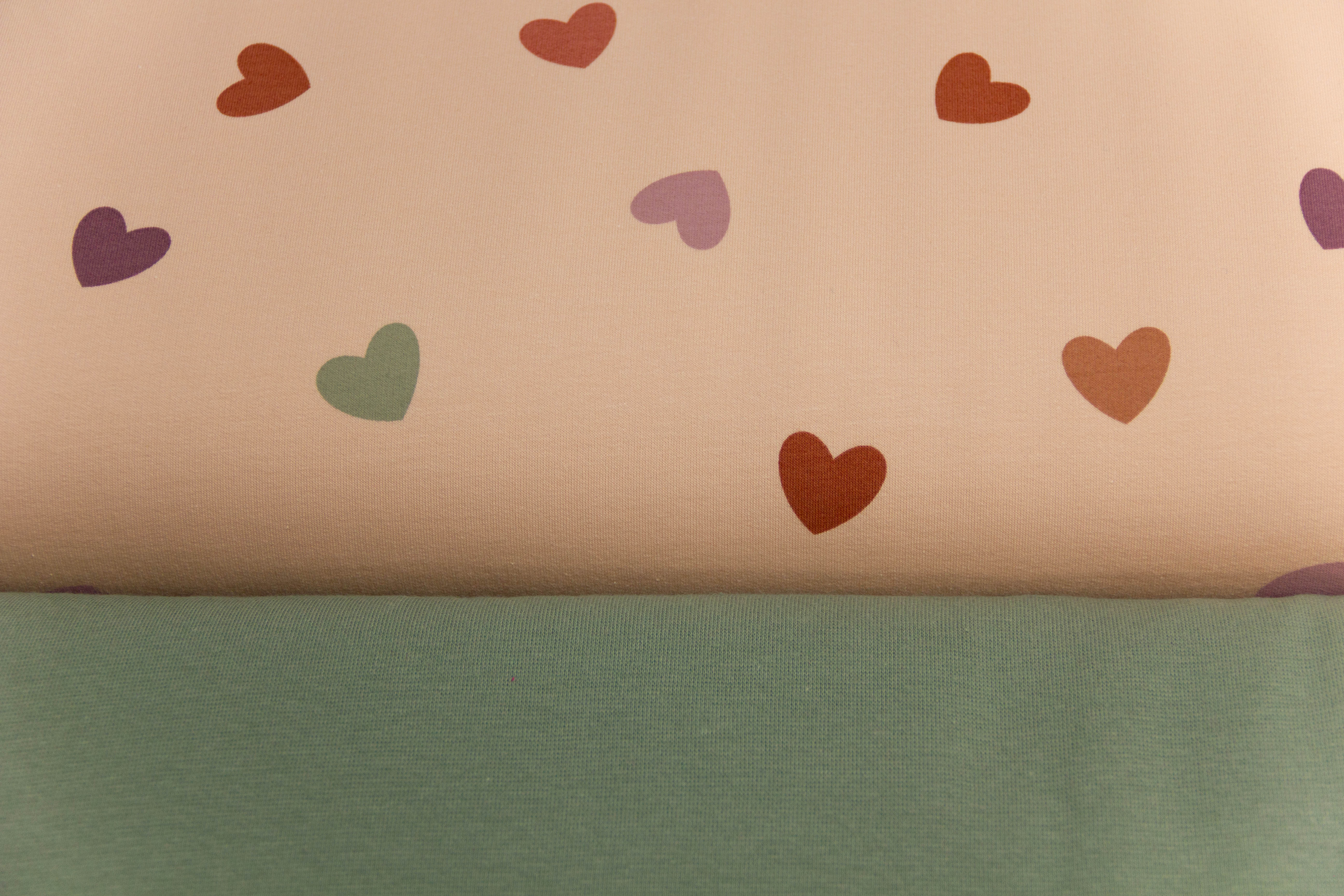 Stoffpaket French Terry + Bündchen French Terry mit Herzen, rosa, altmint
