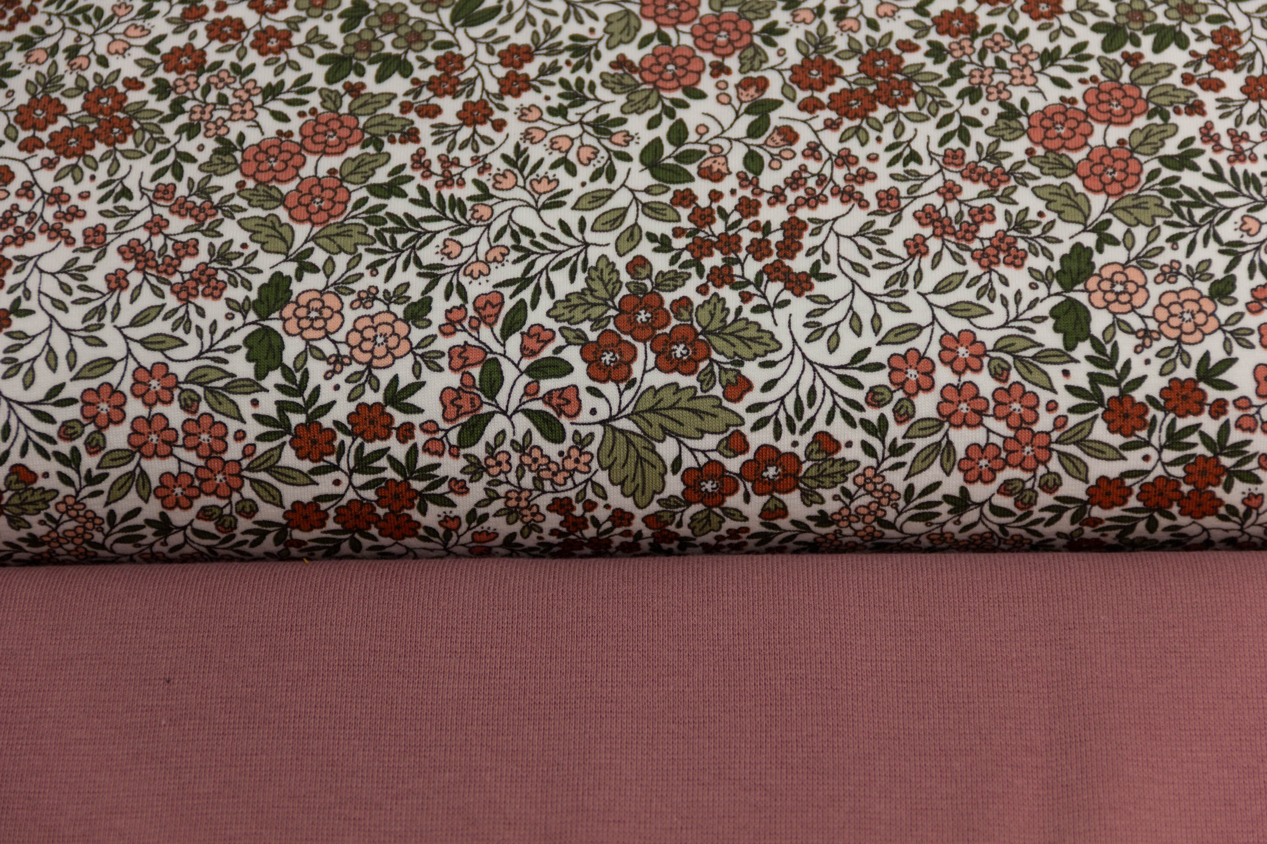 Stoffpaket Jersey + Bündchen mit Blumen, wollweiß, altrosa