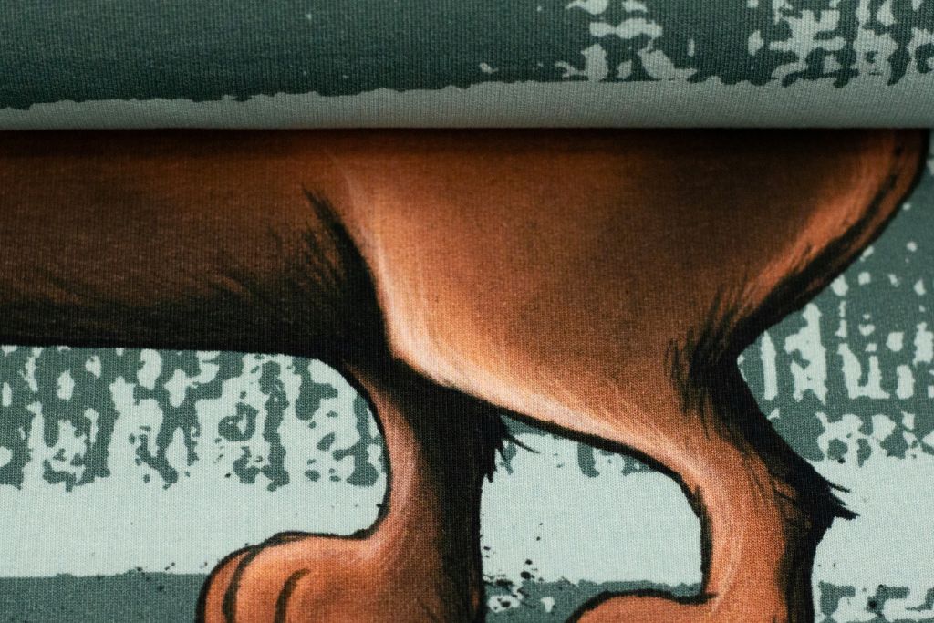 Der Artikel ist in zwei Farbvarianten erhältlich: Mint und ein schönes, dunkleres Smaragd. Zu beiden Panelen gehört ein passender Streifen-Allover. Die Streifen verlaufen horizontal, sind bewusst unregelmäßig angelegt und greifen die jeweilige Farbwelt des Panels auf. Sie eignen sich ideal für Ärmel, Rückseiten, Kapuzen oder als ruhiger Gegenpart zum Panelmotiv. Panel und Allover sind aufeinander abgestimmt, lassen sich flexibel kombinieren und funktionieren jeweils auch eigenständig. Dachshund Berny eignet sich besonders gut für Hoodies, Sweater, Jacken oder zweiteilige Outfits.