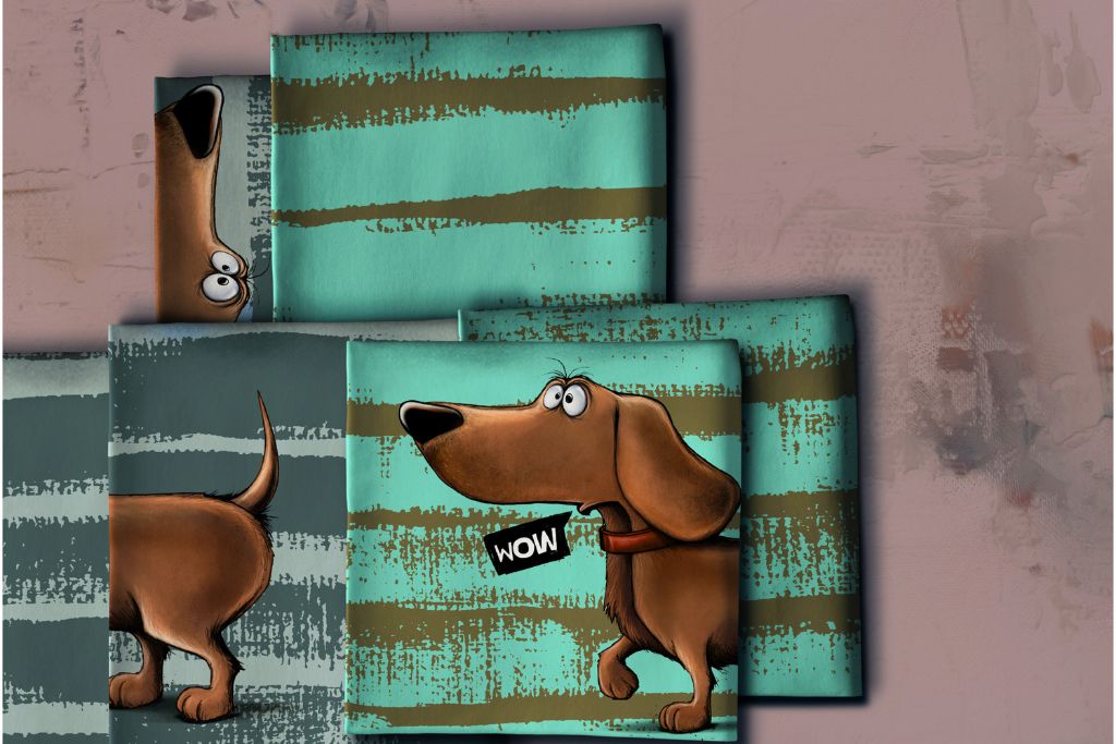 Dachshund Berny ist als Panelmotiv so gestaltet, dass man wunderbar mit dem Design spielen kann: Auf der Vorderseite schaut der Dackel um die Ecke, auf der zweiten Panelhälfte setzt sich das Motiv fort und man sieht das Hinterteil des Dackels. „WOW“ – so ein witziges und gleichzeitig cooles Design!